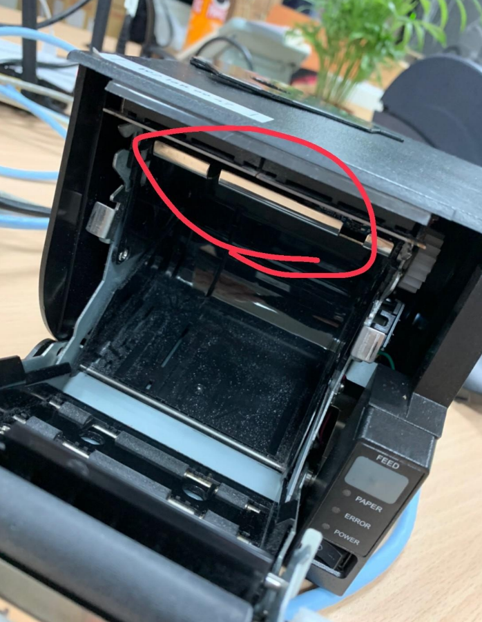 如擦拭後,還是模式狀態,可能為印字頭損壞,請與思圖告知,我們會先查看是否有簽宇思圖的維護保固,